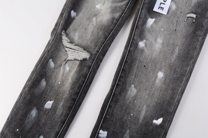 Distressed gray stretch cotton distressed paint splatter slim fit jeans from Purple Brand.