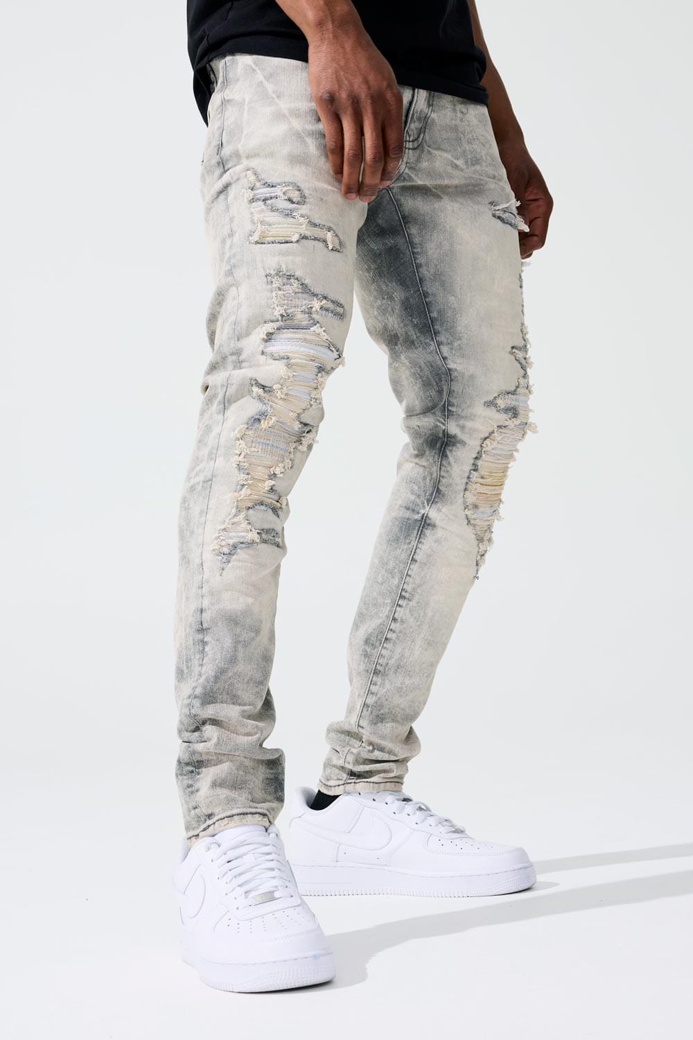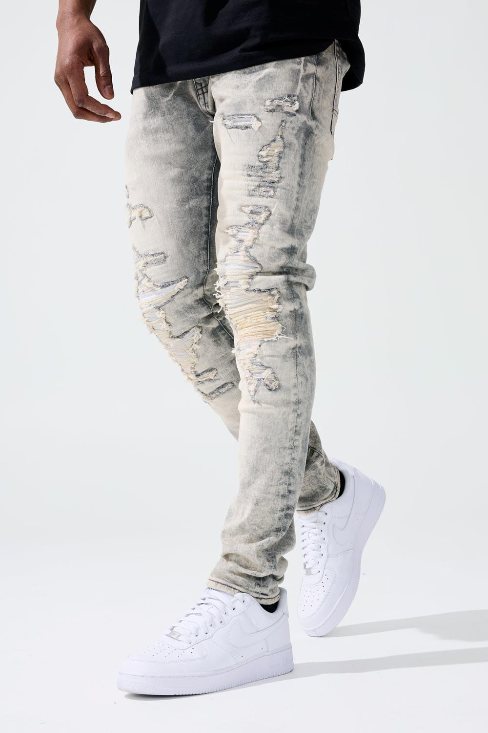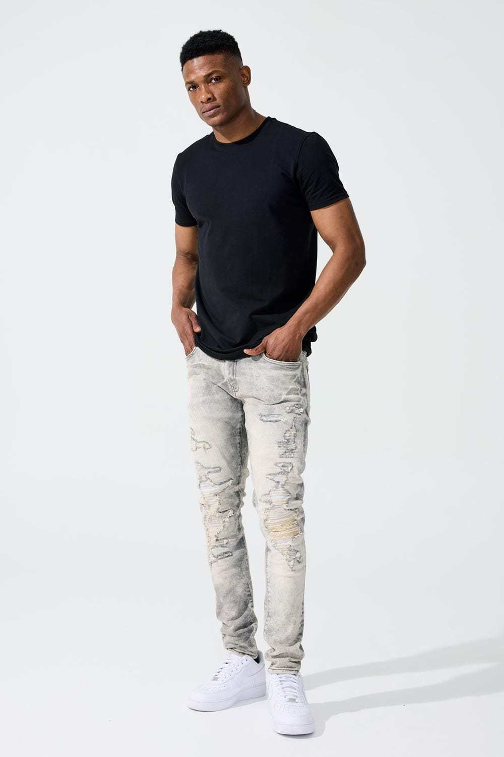 *Brandon is 6'2" and weighs 180 lbs. He is wearing our Ross - Revolution Denim (32/32) in Bone White
