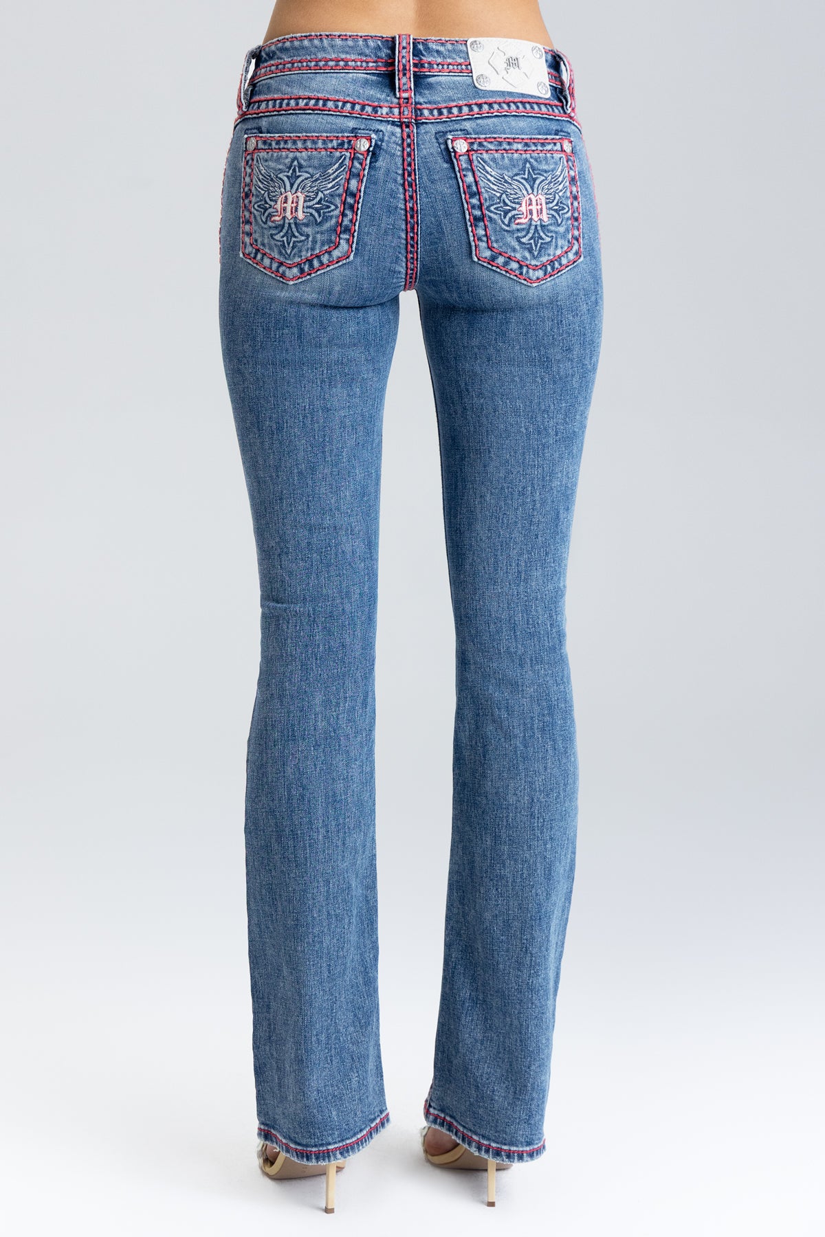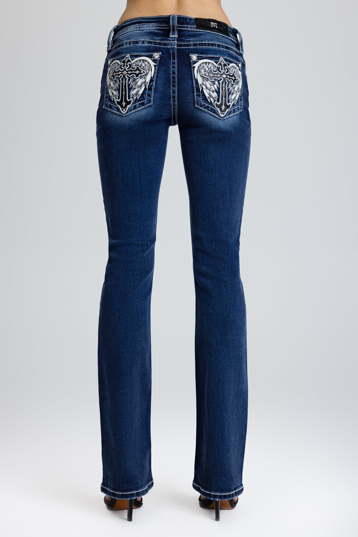 Scattered Fleur Low Rise Slim Bootcut Jeans